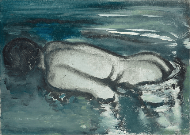 Having researched this artist previously, I was rather pleased to have her pop up again for me to explore further. I found, however, that I had slightly forgotten about work and the attachment I had developed to it. I am completely drawn to the watery method and gentle use of colour to create her works. Whilst the face is apparent in Fig. 2., there is no ‘realness’ to it, however, it still works to give the viewer the complete sense of a woman slightly leaning forward towards the ‘camera’. Again, in Fig. 3., the hands are almost monster-like when viewed closely, yet when considered briefly in the larger context, you see movement and a crossing of the arms. Whilst the colours used are gentle and subtle and the pose rather dainty from a distance, when considered closely, the viewer cannot help but wonder whether the model is grimacing in pain. With regard to Fig. 1. the colours are much more intense and the pose of the model which when considered together lead the viewer to wonder about the possibility that the model is actually deceased floating in the water. It is actually rather sinister in appearance and leads to a rather interesting question for the viewer to consider without ever fully understanding the actual reasoning. I really like how Dumas allows the pieces to take on a life of their own in their development and gently guides them but does not limit them. This is a great visual aid to understanding my tutor’s comments regarding being aware but not too aware of what is developing.